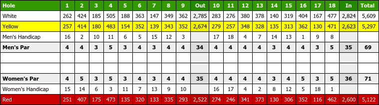Score Card Lilliardsedge Holiday Park And Golf Course